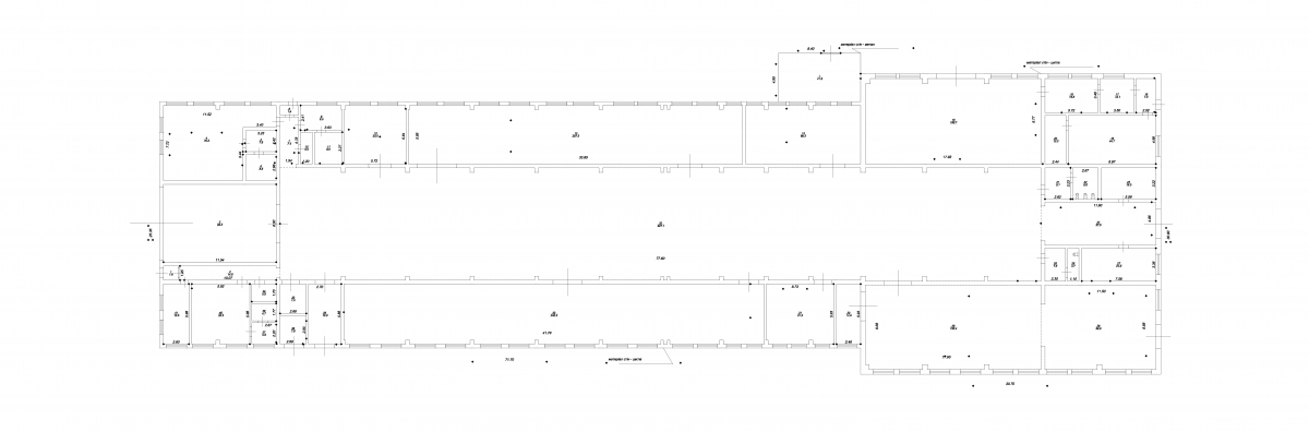 | Довжина (м) Ширина (м) Висота (м) Площа (тис. кв.м.) | «Основний виробничий цех» Довжина (77.60) м. висота ( 8 м.) ширина (11 м) площа (927 кв.м) «Допоміжні виробничі цехи» Довжина (41,79) м. висота (4.5-5м.) ширина (5,88м). площа (246 кв.м) «Допоміжні виробничі цехи» Довжина (33,65) м. висота (4,5-5м.) ширина (5,88м). площа (207 кв.м) «Допоміжні виробничі цехи» Довжина (17,95) м. висота (4,5-5м.) ширина (8,77м). площа (155 кв.м) «Допоміжні виробничі цехи» Довжина (11,50) м. висота (4,5-5м.) ширина (5,88 м). площа (99,6 кв.м) також адміністративний корпус (2 поверхи) |