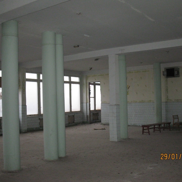 | Назви та розміри основних виробничих площ (придатних до користування) | 1-ий п-х.: Основне приміщення їдальні -169 кв м,2-ий п.х.: два прим-ня(184 кв. м, 222 кв. м), 3-ій п-х : два прим-ня (223 кв. м, 221 кв. м). |