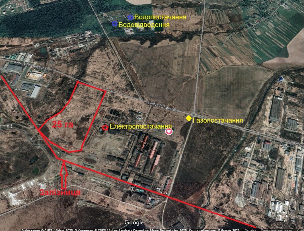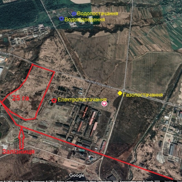 Земельна ділянка площею 25 га у промисловій зоні міста